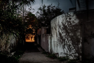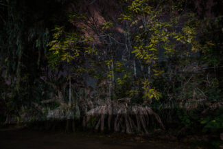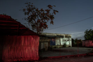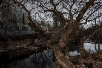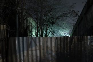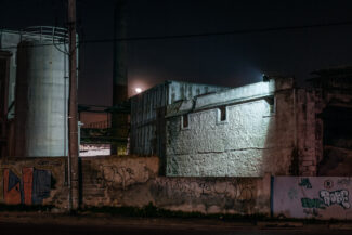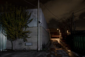 Ero nella zona dal 2012 osservando, il fiume, i torrenti e la disposizione delle antiche strade sono ancora presenti sotto la polverosa terra polverosa contemporanea; i pochi insediamenti rimasti degli ultimi contadini, minuscole isole in un mare di enormi conchiglie industriali; le erbacce urbane che stanno colmando le lacune come se i vecchi alberi cercassero di uscire dalla terra; questa inattesa bellezza effimera, circondata da uno scenario anarchico e urbano, è ciò che mi attrae nella zona. La metodologia che seguo è frammentaria in quanto non desidero creare un’impronta o documentare la realtà. Ciò che desidero è studiare la topografia contemporanea attraverso gli elementi storici che l’hanno creata, scoprire i paesaggi che ritraggono, a volte in modo formale, questa bellezza emergente dalla ruvidità dell’ambiente industriale e dall’estrema distesa della città. Ho deciso che questo potrebbe essere meglio raggiunto durante la notte in cui il lontano orizzonte scompare, sollevando frammenti di connessioni con il passato, richiamando ricordi e provocando incontri inaspettati. Passando dalle vecchie mappe alle mappe geografiche di Google, leggendo articoli e studi, e poi camminando nella zona, cercando di trovare dove poter mettere in scena il paesaggio che sarà contemporaneo, ma potrebbe anche essere uno sguardo immaginario alla topografia del passato romantico.