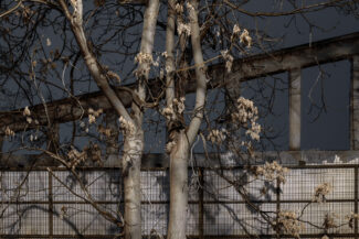 Lungo le rive del fiume Kifissos di Atene, c’era una volta un grande uliveto, che è stato conservato intatto fino al 1890, secondo la mappa disegnata dal cartografo tedesco Johann Kaupert. Tra 170.000 alberi mappati c’era il primo edificio industriale, una conceria. L’ubicazione dell’industria pesante nel XIX secolo pose fine a questo immenso giardino, ammirato da storici e viaggiatori. Oggigiorno crescono solo le erbacce urbane e gli alberi invasivi. Le tracce lasciate dalla topografia del passato sono coperte di polvere e dissolte in rumori inquietanti. L’oscurità della notte sta trasformando il luogo, in cui ombre di lussureggianti verde scuro stanno emergendo dalle strade sporche di questo indisciplinato paesaggio industriale.