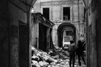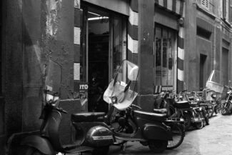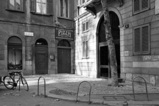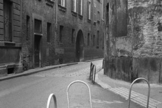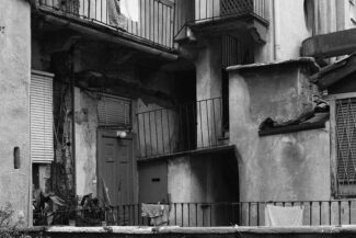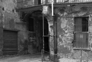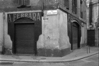 Il lavoro di Carlo Tancredi risale agli anni ottanta del ‘900, ed è una sincera documentazione analogica del paesaggio urbano. Un girovagare libero per cogliere scorci e vedute dal fascino immutato, senza artifici di sorta, che oggi possiamo ammirare e conoscere grazie ad un lavoro costante che l’autore ha condotto per le vie cittadine, con la sua inseparabile Hasselblad.