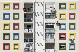 Lo studio di Vito Leone parte dal minimalismo degli anni ’70 e giunge al modo di fotografare i paesaggi urbani ed industriali che fu di Basilico, della scuola tedesca dei Becher, di Baltz e Robert Adams. Un tipo di fotografia apparentemente fredda, a volte priva della presenza umana, di cui si percepisce solo il passaggio o la presenza, il ‘respiro’. Sono i non-luoghi, secondo l’accezione dell’antropologo Marc Augé, i temi portanti di questa fotografia. Agli stessi, la fotografia di Vito Leone cerca di conferire dignità e bellezza, anche dove e quando questo non è evidente. Le periferie, le stazioni, gli aeroporti, le strade e gli spazi di passaggio sono non-luoghi, e – al contempo, luoghi comuni, universali, topoi riconoscibili a tutti, come se il mondo fosse un’unica grande città. La struttura architettonica, così, perde il suo valore d’uso quotidiano e diventa metafora, simbolo, linea, essenza: l’idea nella mente dell’architetto, la griglia del linguaggio architettonico, disegnata e proiettata nello spazio, che è catturata dalla fotografia. Il risultato è uno studio comparato sulle forme geometriche, alla ricerca di una “grammatica” dello spazio. Un processo di sottrazione del segno che si ricompone nella semplicità dell’immagine, la quale, alleggerita dalle ridondanze, si assolutizza in linee e colore.